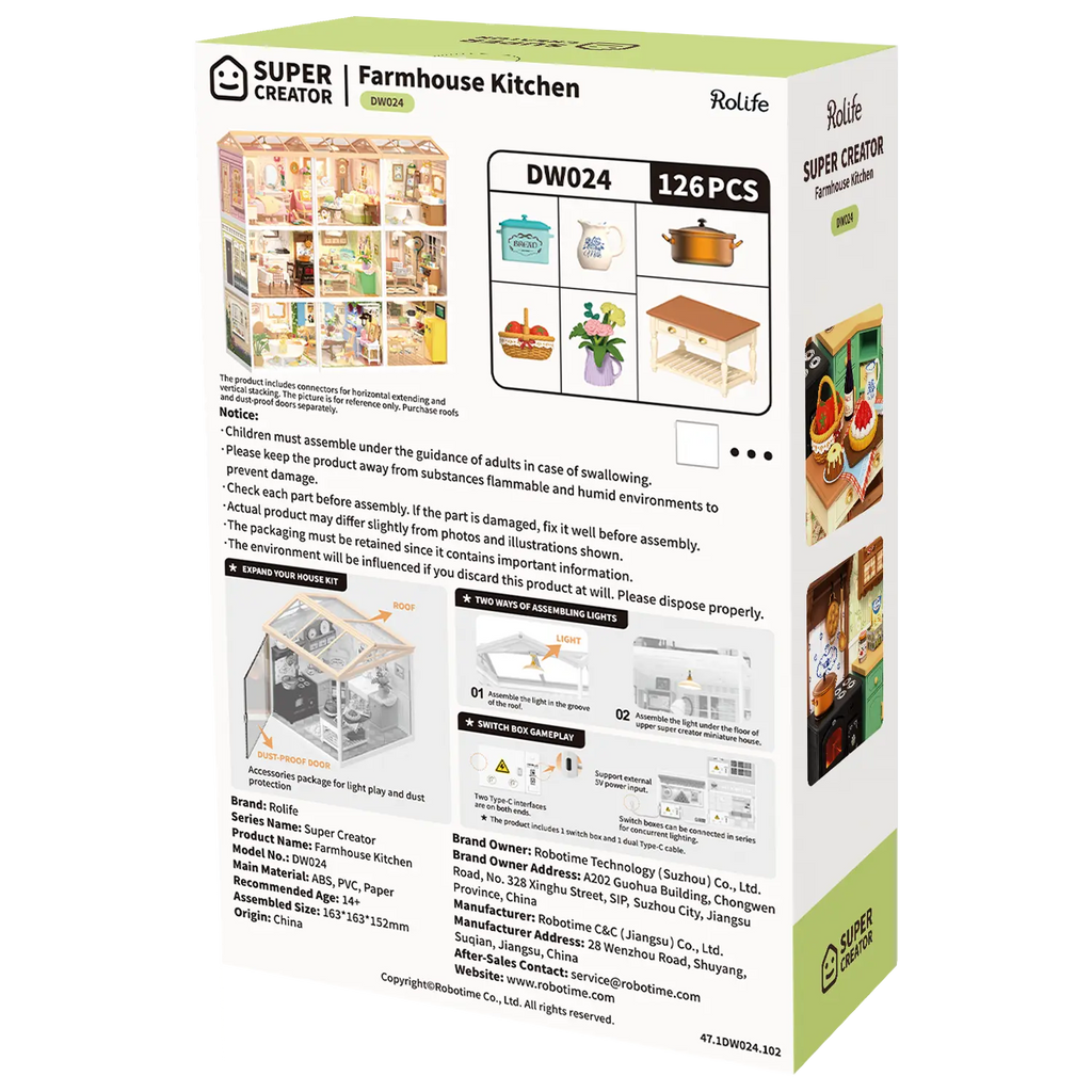 Wussten Sie, dass Sie auf dieser Miniaturküche zum Beispiel ein Schlafzimmer stapeln können, um so ein Puppenhaus zu schaffen? Wir haben viele passende Szenen, und Sie können fast unbegrenzt stapeln. Wie wäre es mit Holiday Tea Time und Midsummer Dream Yard? Bei diesen Kunststoff-Miniaturhäusern der Super Creator-Serie können Sie auch transparente Fassaden und Dächer kaufen. Unbegrenztes Mixen und Matchen!