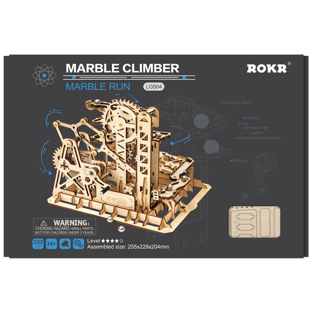 Reparieren Sie gerne und arbeiten Sie gerne mit Ihren Händen? Dann ist die hölzerne “Climber Fortress” von Robotime ROKR, auch bekannt als “Marble Climber”, das richtige Set für Sie. Dieses Bauset ist eine tolle Murmelbahn Holz mit Eisenkugeln. Sie haben einen großen Siphon mit Aufzug und es gibt Zahnräder, schnelle Rutschen, Austauscher, aber am auffälligsten ist der quadratische Turm der Festung. Die Zinnen erinnern wirklich an eine Festung oder Burg aus der Vergangenheit. Mit diesem mechanischen Kugelbahn aus Holz hebt der Aufzug Ihre Kugel zum höchsten Punkt, die aus dem Ausgang rollt, wo das große Zahnrad sie aufnimmt. Wenn Ihre Murmel aus dem Zahnrad kommt, landet sie in der supercoolen Festung. In der Festung gibt es einen Kreuzer, der bestimmt, in welche Richtung Ihre Kugel durch die Festung geht. Die nächste Kugel danach wählt einen anderen Pfad. Sobald sie die Festung verlassen haben, kehrt Ihre Murmel über Sortierer zum Boden des Aufzugs zurück.