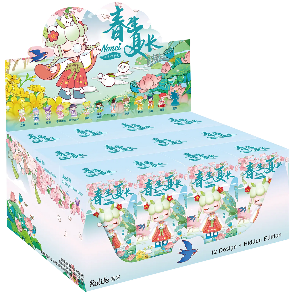 Blind Boxing wird zu einem Abenteuer mit den farbenfrohen Nancis der 24 chinesischen Sonnen-Terme. Jede Box ist eine Überraschung und erweckt eine der 13 wunderschönen Nanci-Figuren zum Leben. Alle sind inspiriert von den traditionellen ostasiatischen Sonnen-Termen. Nanci ist ein verträumtes Mädchen, das selbst im Schlaf die bezauberndsten Abenteuer erlebt. Die Figuren sind äußerst detailliert und liebevoll gestaltet, wodurch jede Sammlung zu einem glänzenden Blickfang wird. Und achten Sie darauf: Da gibt es auch die geheime Nanci! Der absolute Traum aller Sammler, mit ihrem lila-rosa chinesischen Gewand, Haarspangen und einer zarten Lotusblume in der Hand – eine Seltenheit mit einer Chance von nur 1:144!