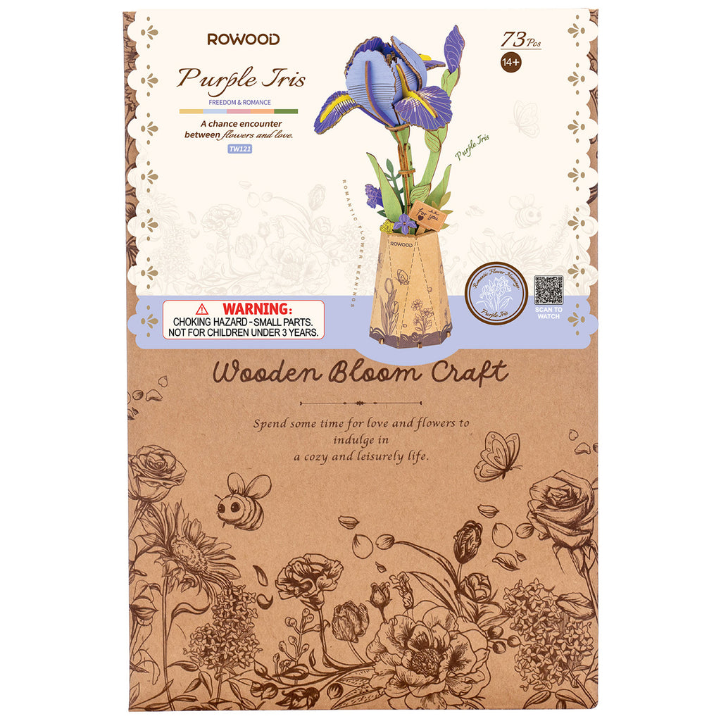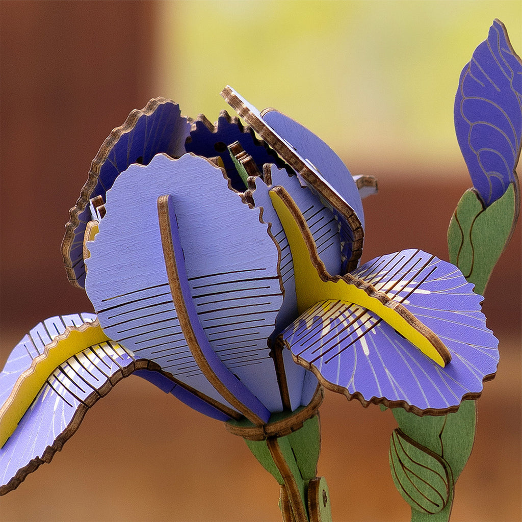 Bauen Sie jetzt den Holzbaukasten einer fast lebensechten Blume, die Atmosphäre ausstrahlt: die Rowood Purple Iris.