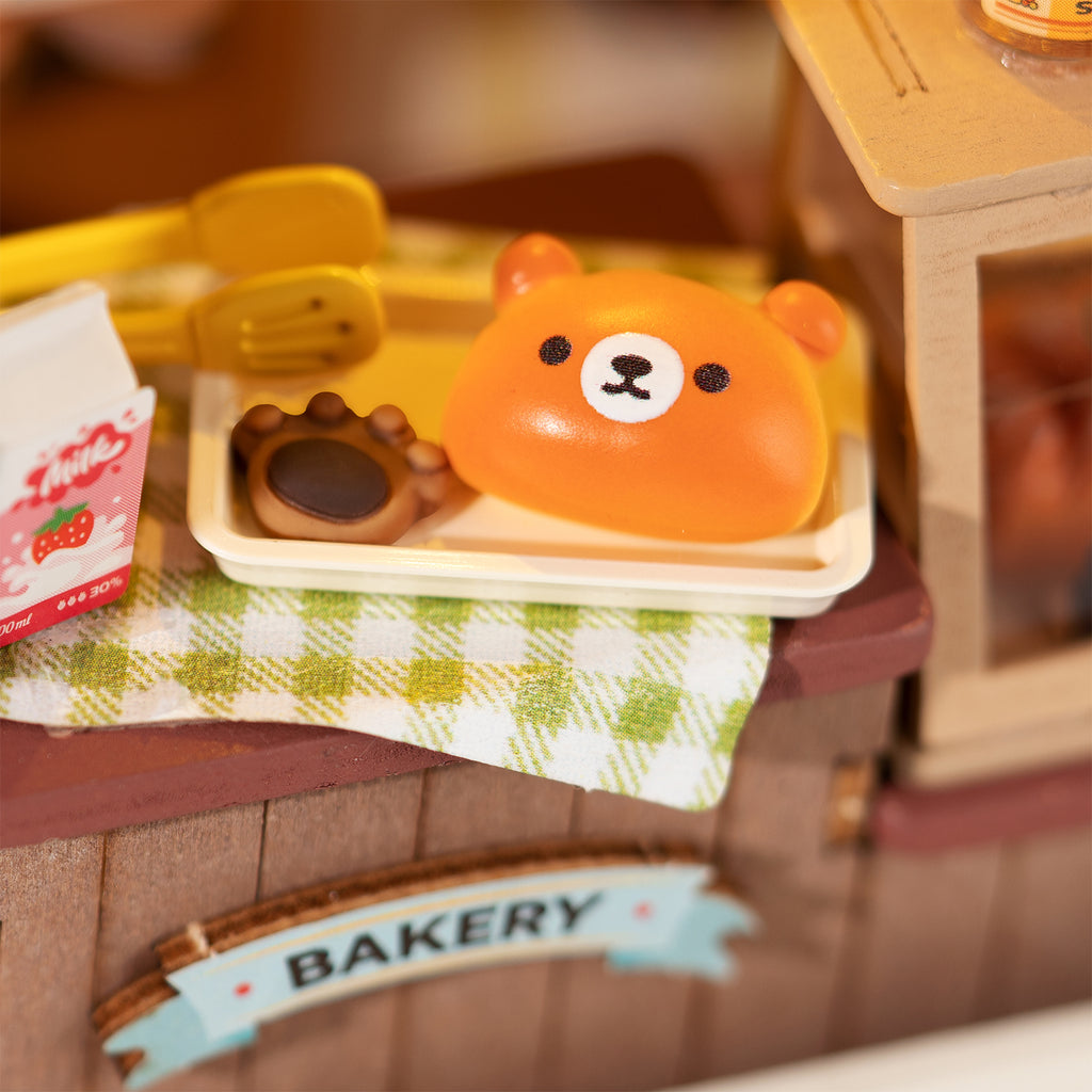 Stellen Sie sich vor, Ihre Lunchbox führt heimlich ein eigenes Leben in der Nacht. Dass sich geheimnisvolle Dinge im Inneren abspielen. Würden Sie das nicht gerne wissen? Mit diesem lustigen Bausatz erzählt Ihnen Rolife, was alles passieren kann. Zum Beispiel könnte sich eine Bäckerei in Ihrer Brotdose, mit dem Griff eines Croissants, befinden. In diesem Fall eine Bärenbäckerei. In einem riesigen Bärenofen können Sie Brötchen backen. Diese legen Sie dann in Ihre Vitrine oder präsentieren sie auf dem Tablett, das gemütlich auf einem karierten Tuch steht. Und das alles in einem Bausatz!