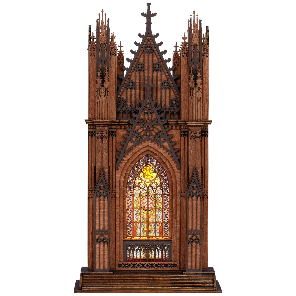 Treten Sie ein in eine Welt aus Buntglas mit Rolifes Twin-Tower Cathedral Holzbausatz!