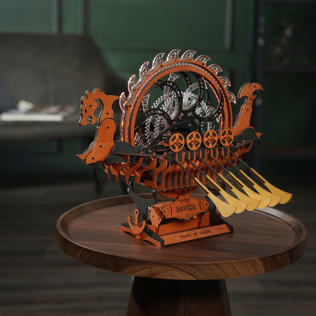 Zurück zu den Wikingern! Holzbausatz eines echten rudenden, beleuchteten Wikinger-Schiffs